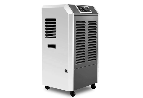 商用除湿机通过风机将潮湿空气抽入机器内部,通过压缩机制冷将蒸发器降温至露点以下,潮湿空气经过蒸发器在表面凝结成水,汇集至接水盘后,流入水箱中,干爽空气经冷凝器重新加热由出风口排出,这样不断循环将室内湿度降低。