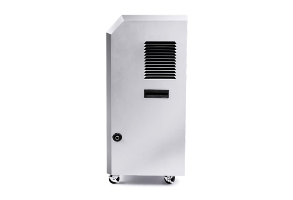 商用除湿机通过风机将潮湿空气抽入机器内部,通过压缩机制冷将蒸发器降温至露点以下,潮湿空气经过蒸发器在表面凝结成水,汇集至接水盘后,流入水箱中,干爽空气经冷凝器重新加热由出风口排出,这样不断循环将室内湿度降低。